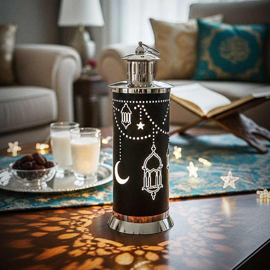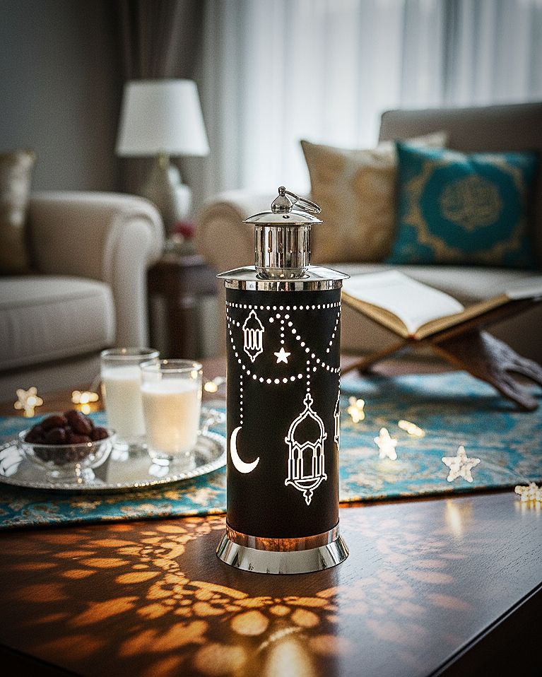 لأصحاب الذوق الرفيع الذين يبحثون عن الاختلاف، نقدم لكم هذا الفانوس المصنوع من الاستانلس ستيل بتصميمه "الشيك" الذي يجمع بين فخامة الأسود ولمعان الفضي. قطعة ديكور عصرية تمنح منزلك لمسة فنية غير تقليدية في رمضان.