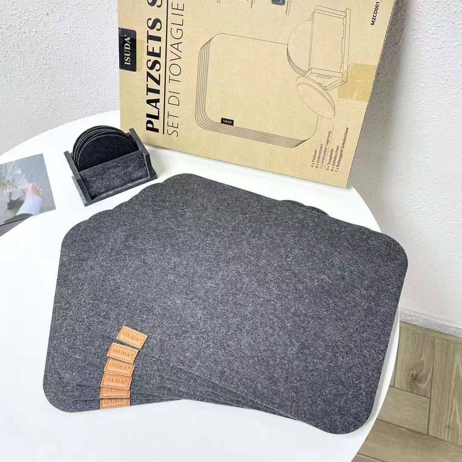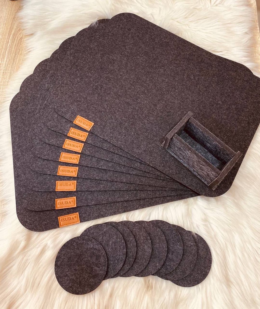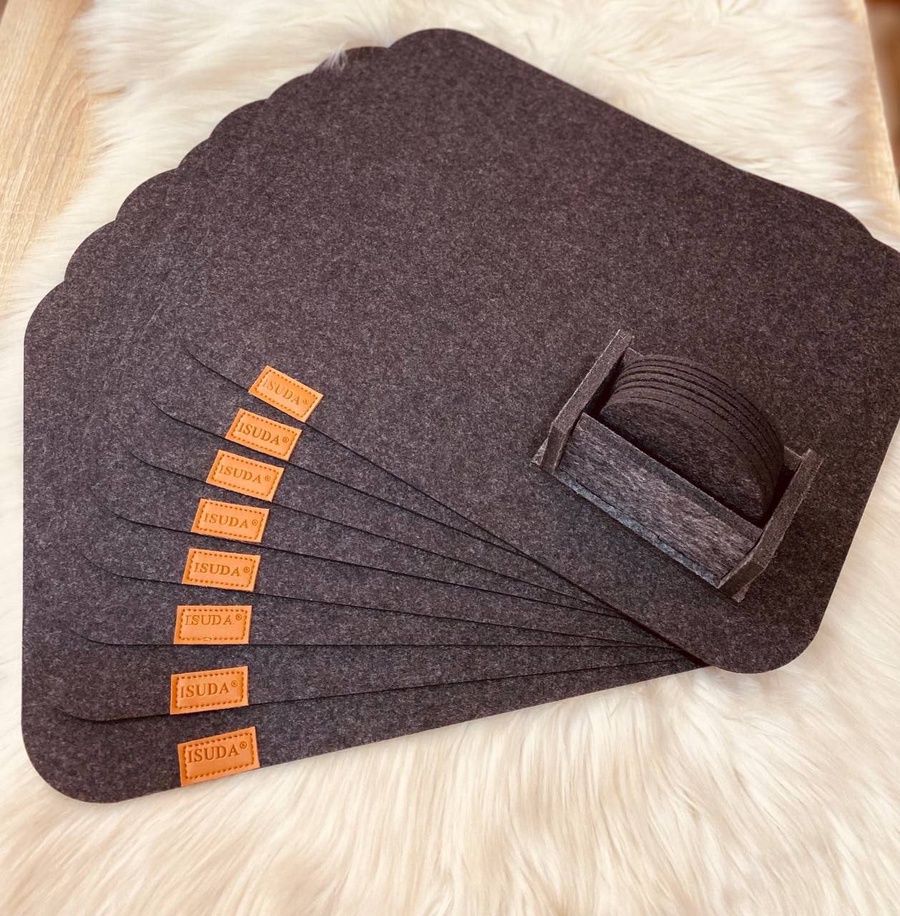 طقم من 8 مفرش سفرة + 8 كوسترات اكواب + 1 حامل كوستر