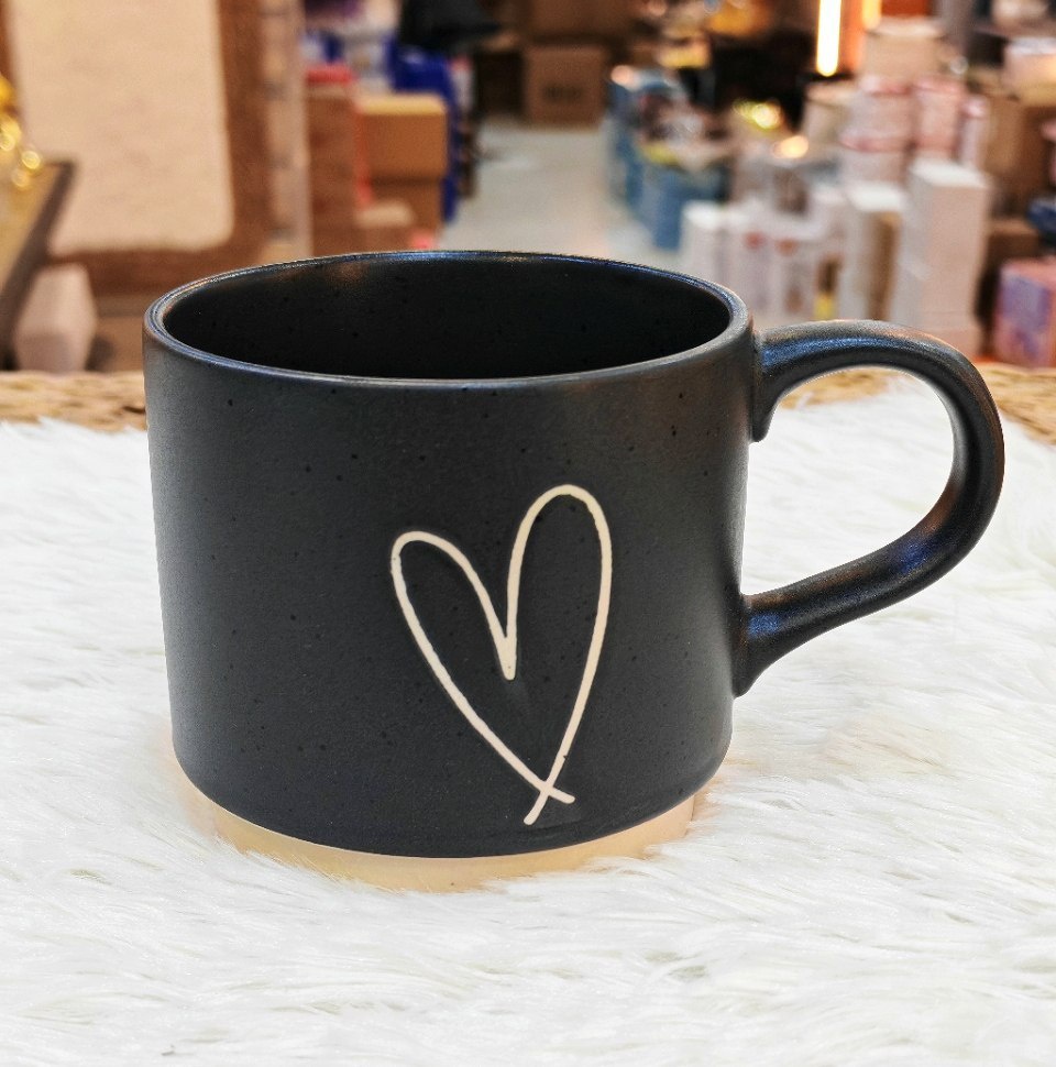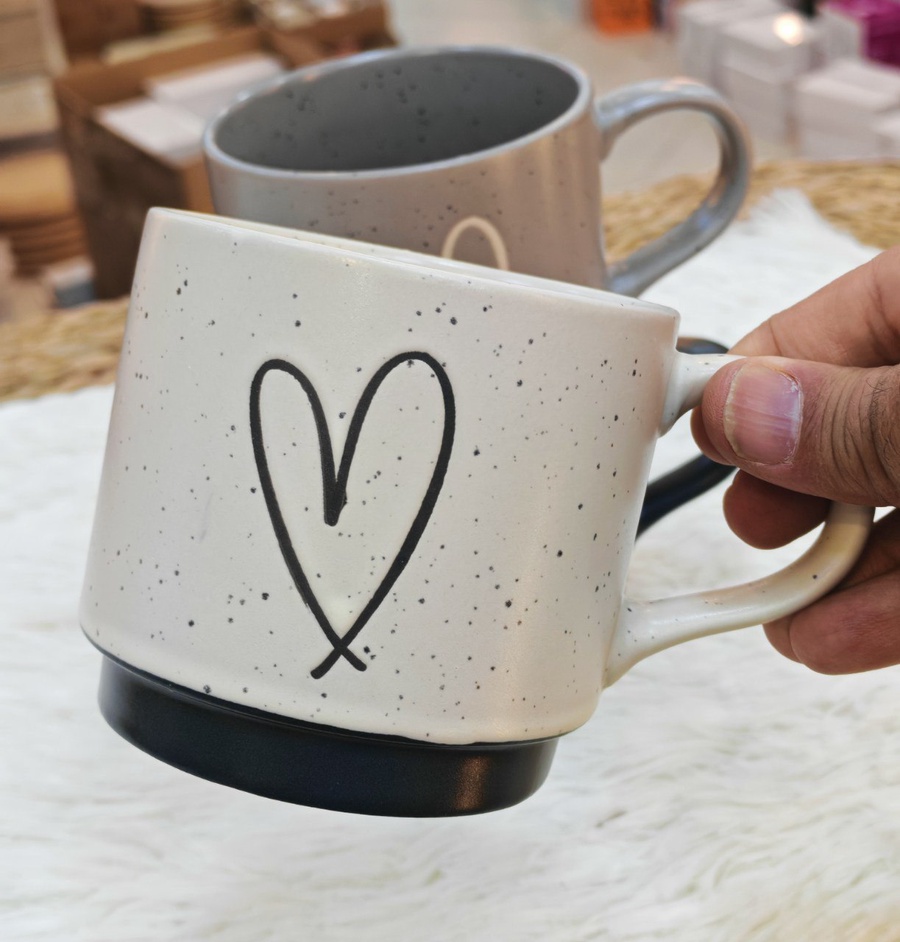 لمسة حُب في كل رشفة! ❤️ استمتع بمشروبك المفضل في مج البورسلين الفاخر بتصميمه الفريد. يتميز بنقوش قلوب محفورة بدقة ويد أنيقة على شكل قلب تمنحك راحة وسعادة مع كل استخدام.