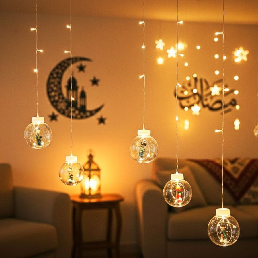 أضف لمسة ساحرة ودافئة على ديكور منزلك مع ستارة نور رمضان المميزة. تأتي بتصاميم مضيئة لأشهر شخصيات وفوانيس رمضان التي تعيد ذكريات الزمن الجميل وتخلق أجواءً احتفالية لا تُنسى.