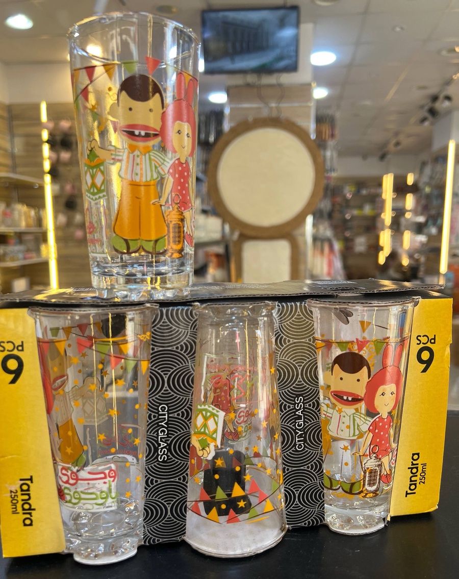 استقبلي ضيوفك بروح رمضانية أصيلة مع طقم شوب "أغادير" الشهير. الطقم الذي يجمع بين نقاء الزجاج وألوان رمضان المبهجة، ليضيف لمسة من السعادة على كل كوب عصير بعد يوم صيام طويل.