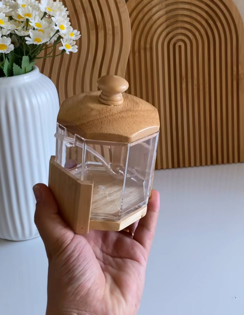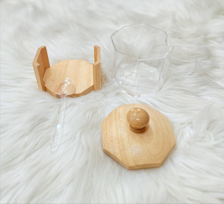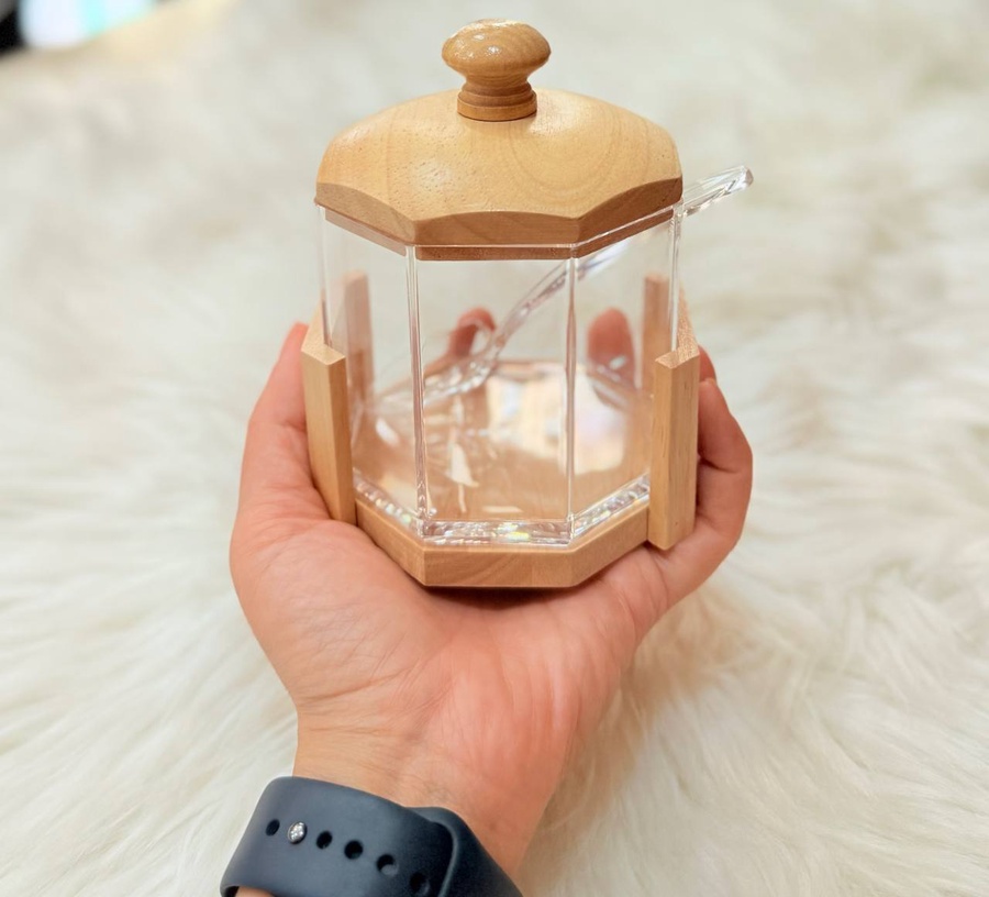 أضيفي لمسة عصرية وراقية لركن القهوة أو مائدة الضيافة مع السكرية السداسية المبتكرة. تصميم يجمع بين شفافية الكريستال وقوة الأكريليك مع فخامة الخشب الطبيعي.