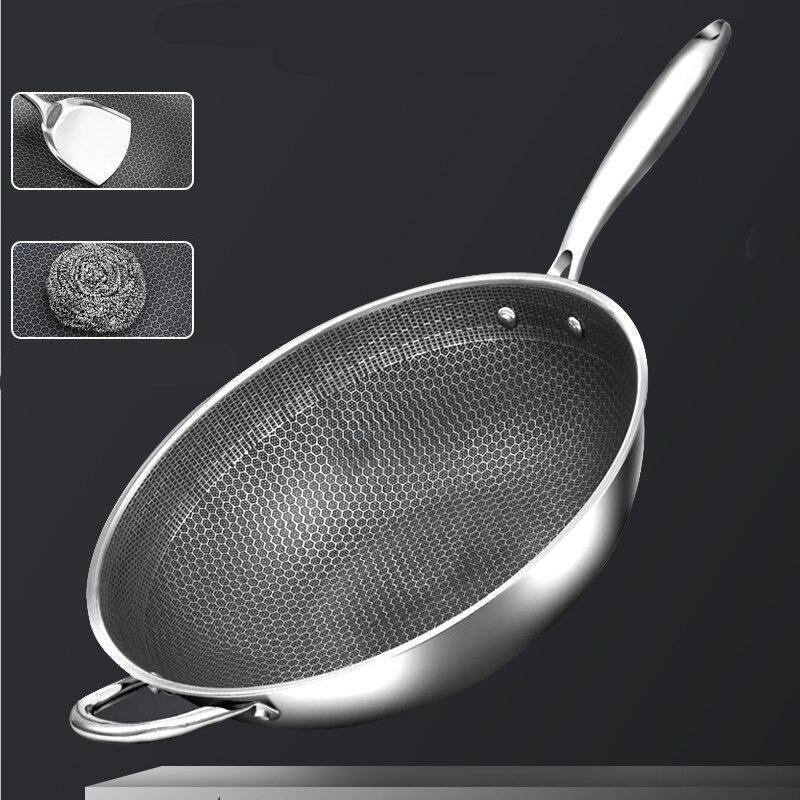 طاسة ووك بتصميم خلية نحل من الفولاذ المقاوم للصدأ